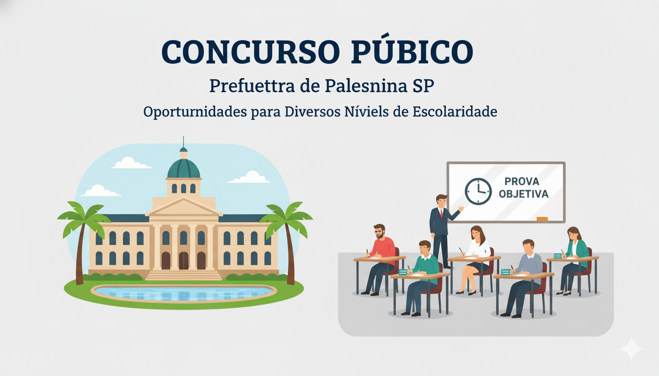 Foi publicado recentemente o edital do novo concurso público da Prefeitura de Palestina, no estado de São Paulo, com a finalidade de preencher 128 vagas em diferentes áreas de atuação. Este certame oferece oportunidades para cargos que exigem níveis de escolaridade que vão do fundamental ao superior, ampliando as chances para candidatos com diferentes formações.