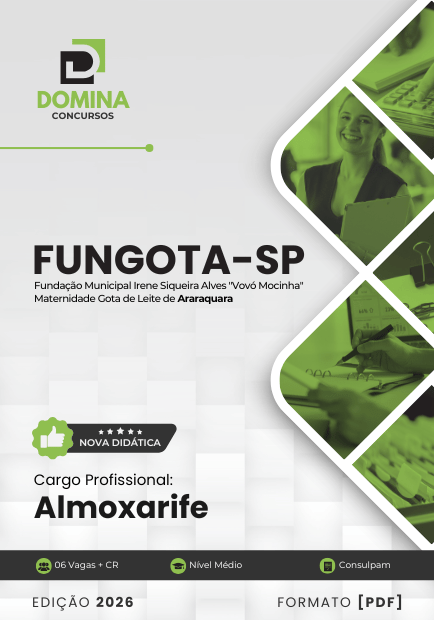 Não perca essa oportunidade de se preparar com a excelência que sua carreira merece! Compre agora a Apostila Almoxarife FUNGOTA Araraquara SP 2026 e inicie sua preparação rumo à aprovação.