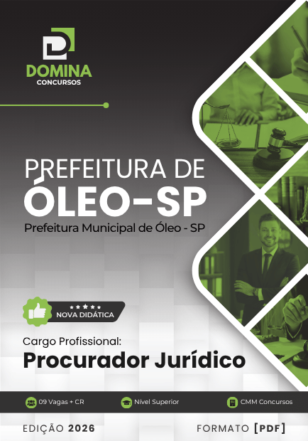 As apostilas da Domina Concursos são elaboradas de forma estruturada e atualizada, garantindo que você esteja sempre por dentro do conteúdo exigido nos editais. Nossa Apostila para o Concurso Procurador Jurídico Óleo SP 2026 oferece um conteúdo programático completo, que inclui tópicos de conhecimentos gerais, direito administrativo, e muito mais, totalmente alinhados com as exigências do edital.
