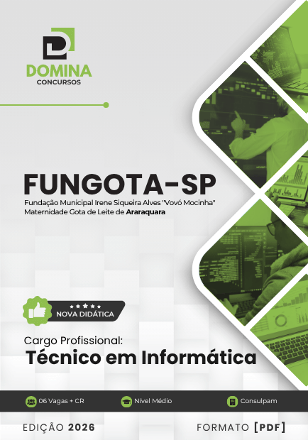 Não perca essa oportunidade única de se preparar para o concurso do FUNGOTA Araraquara e conquistar sua aprovação. Clique no link e garanta já sua apostila: Apostila Técnico em Informática FUNGOTA Araraquara SP 2026.