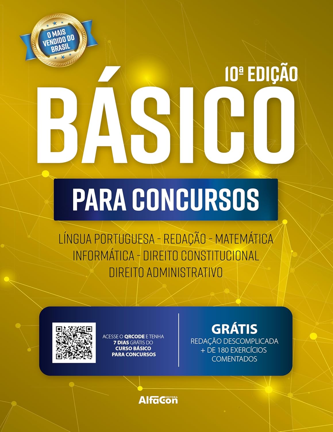 O Básico para Concursos – 10ª Edição da AlfaCon é uma excelente ferramenta para quem busca passar em concursos públicos. O livro oferece uma abordagem completa, com conteúdo atualizado e focado nas principais disciplinas cobradas nas provas, como Língua Portuguesa, Matemática, Direito Constitucional e Administrativo, além de exercícios gabaritados. Sua estrutura facilita o estudo, especialmente para iniciantes, pois apresenta explicações claras e objetivos, permitindo que o estudante assimile o conteúdo com mais facilidade. Além disso, o material acompanha recursos online, ampliando o acesso a conteúdos complementares e reforçando o aprendizado.